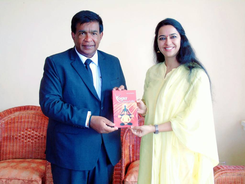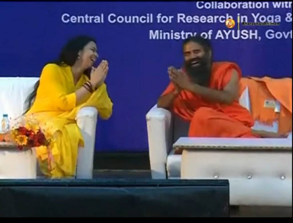 Gurudev & Acharya ji with then Minister of Ayush
