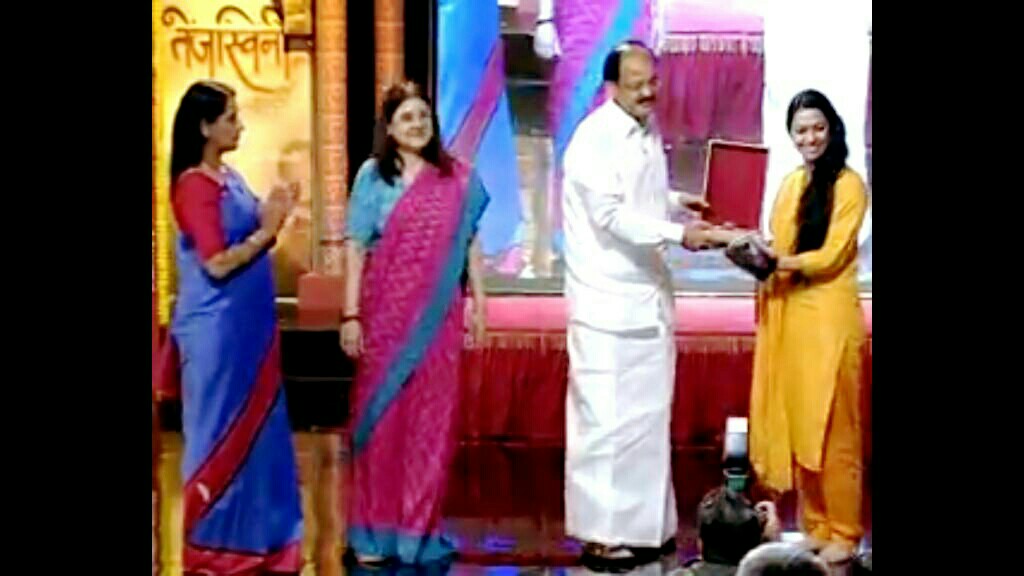 Acharya ji receiving honor from then Vice President of India